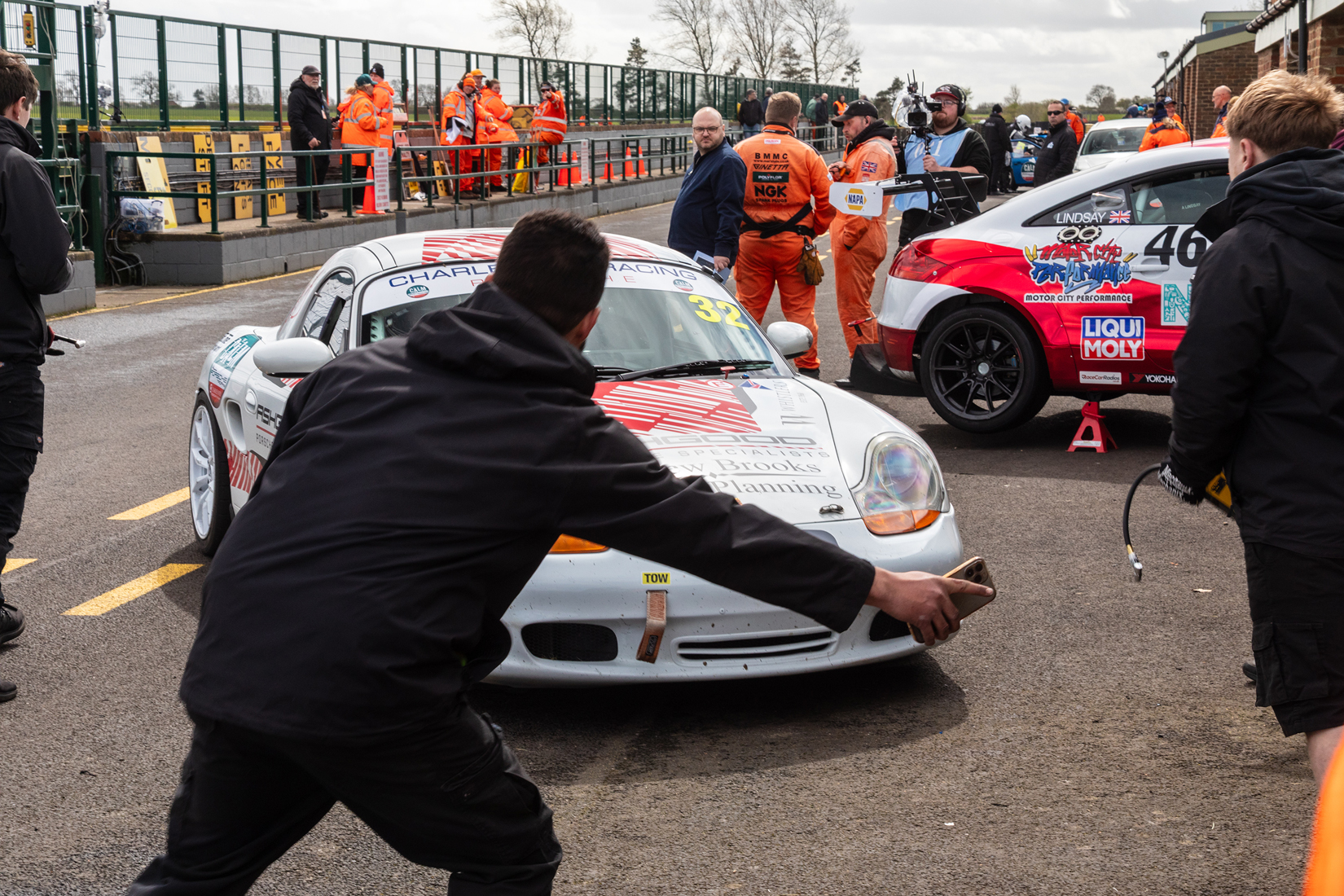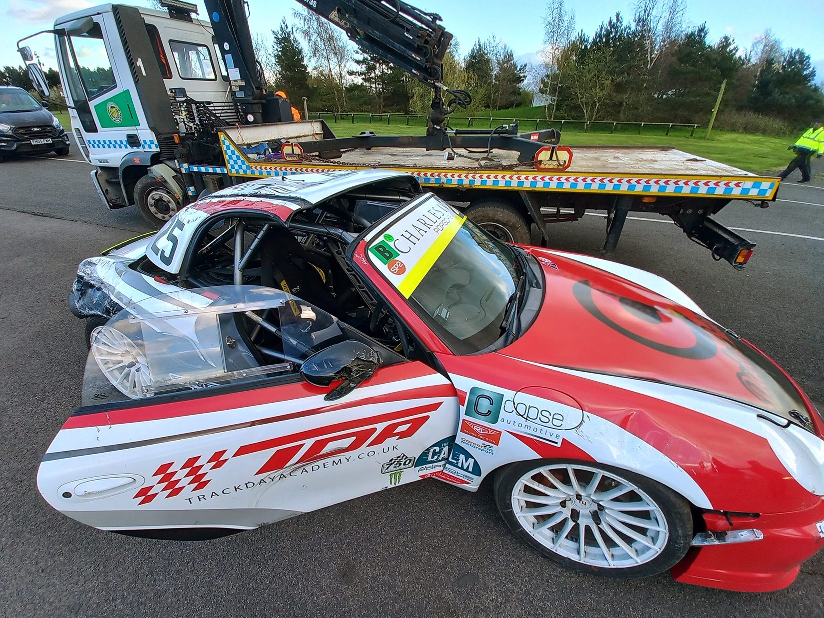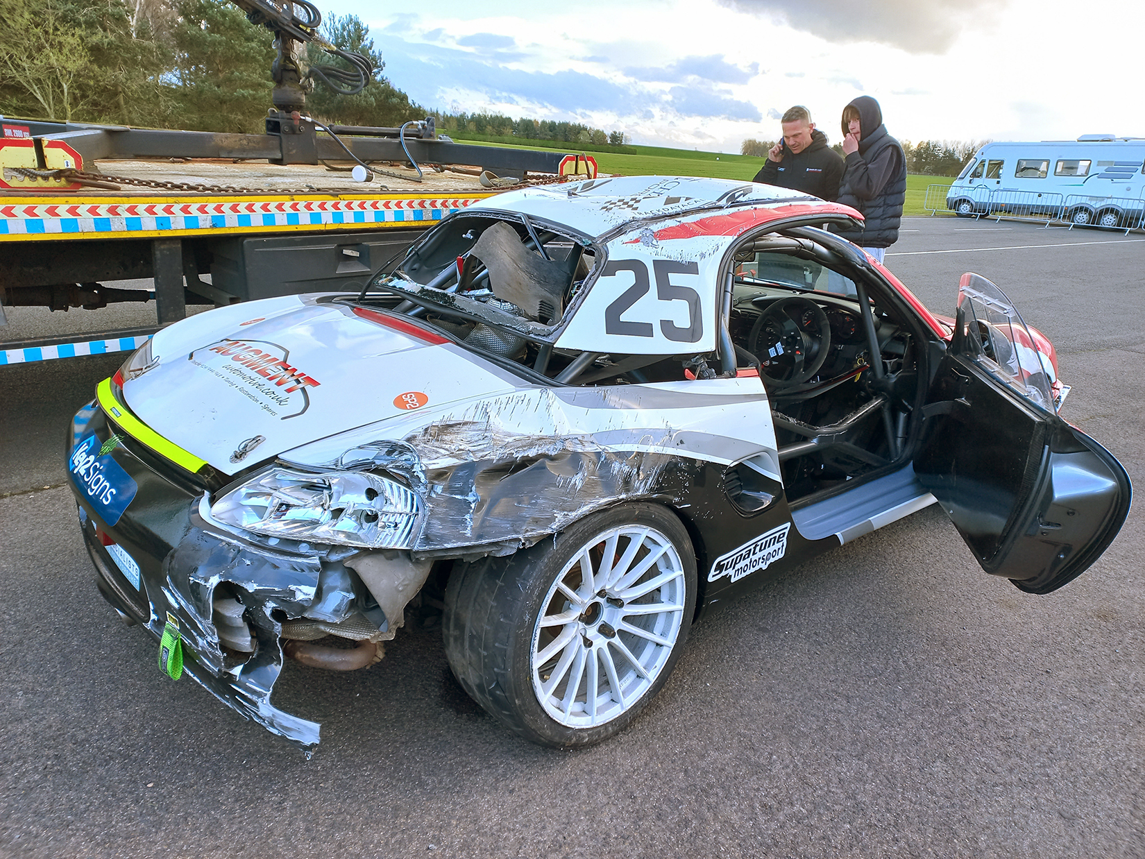 The racing was good, but sadly one our cars, #25 a Boxter S rolled and has had to be written off, this is very unusual for our series, we don’t often see accidents like this, but thankfully the driver, Roger Coy was unharmed